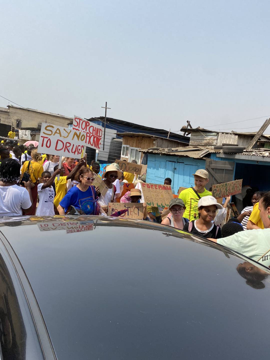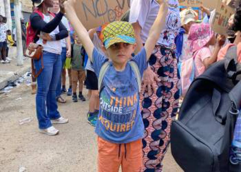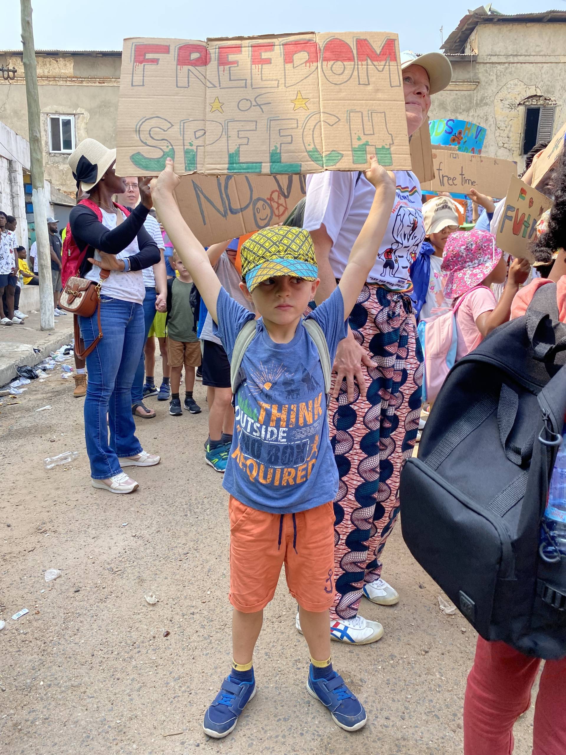 Zum 13. Jahrestag der NGO Universal Wonderful Street Academy machen die Gründer der NGO jährlich eine Demo für Kinderrechte in Jamestown.