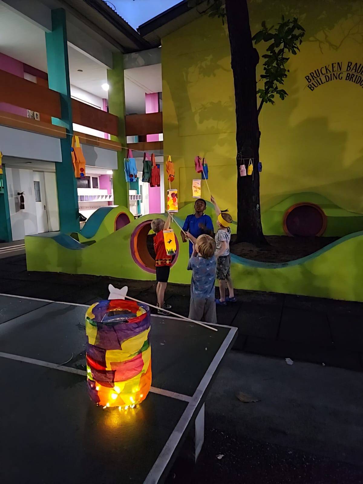 Nach dem Laternenumzug kehrten alle auf das Schulgelände zurück, und das Laternenfest klang bei einem gemeinsamen Abendessen, Musik und fröhlichem Beisammensein aus. Zum Abschied erhielt jedes Kind einen Weckmann – ein traditionelles deutsches Gebäck, das beim Laternenfest nicht fehlen darf.