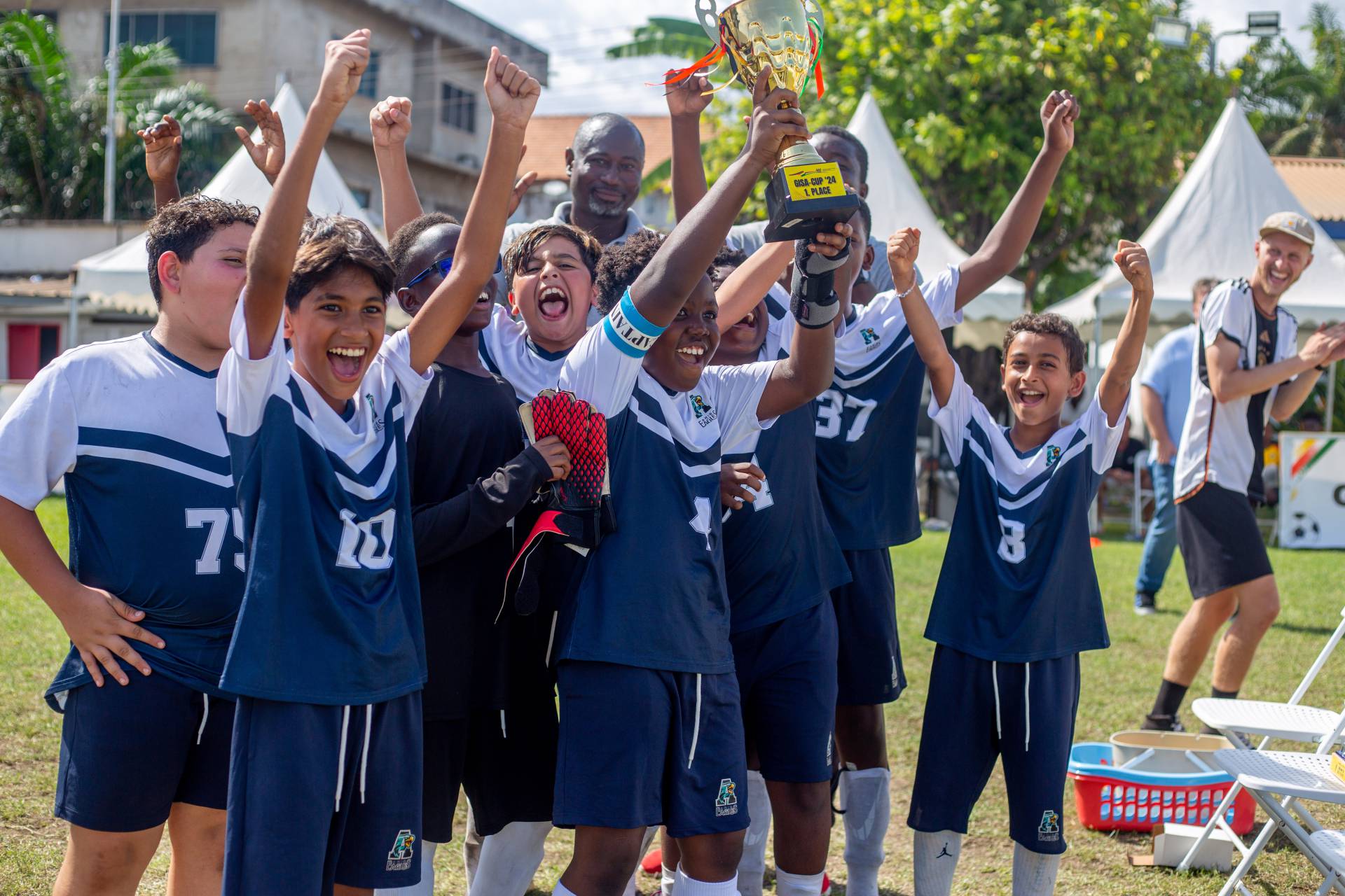Am Dienstag konnten wir den GISA-Cup für Schulen nachholen, der wegen schlechter Wetterbedingungen am 6. Mai 2024 ausfallen musste. 12 Mädchen- und Jungsteams traten gegeneinander an.Beide Teams der DISA  haben sich hervorragend geschlagen. Das Team von Coach Enoch hat in einem spannenden Spiel gegen das Team der Universal Wonderful Street Academy aus Jamestown den 6. Platz belegt, während das Team von Laura Lützeler den 4. Platz in der Mädchengruppe belegt hat.
