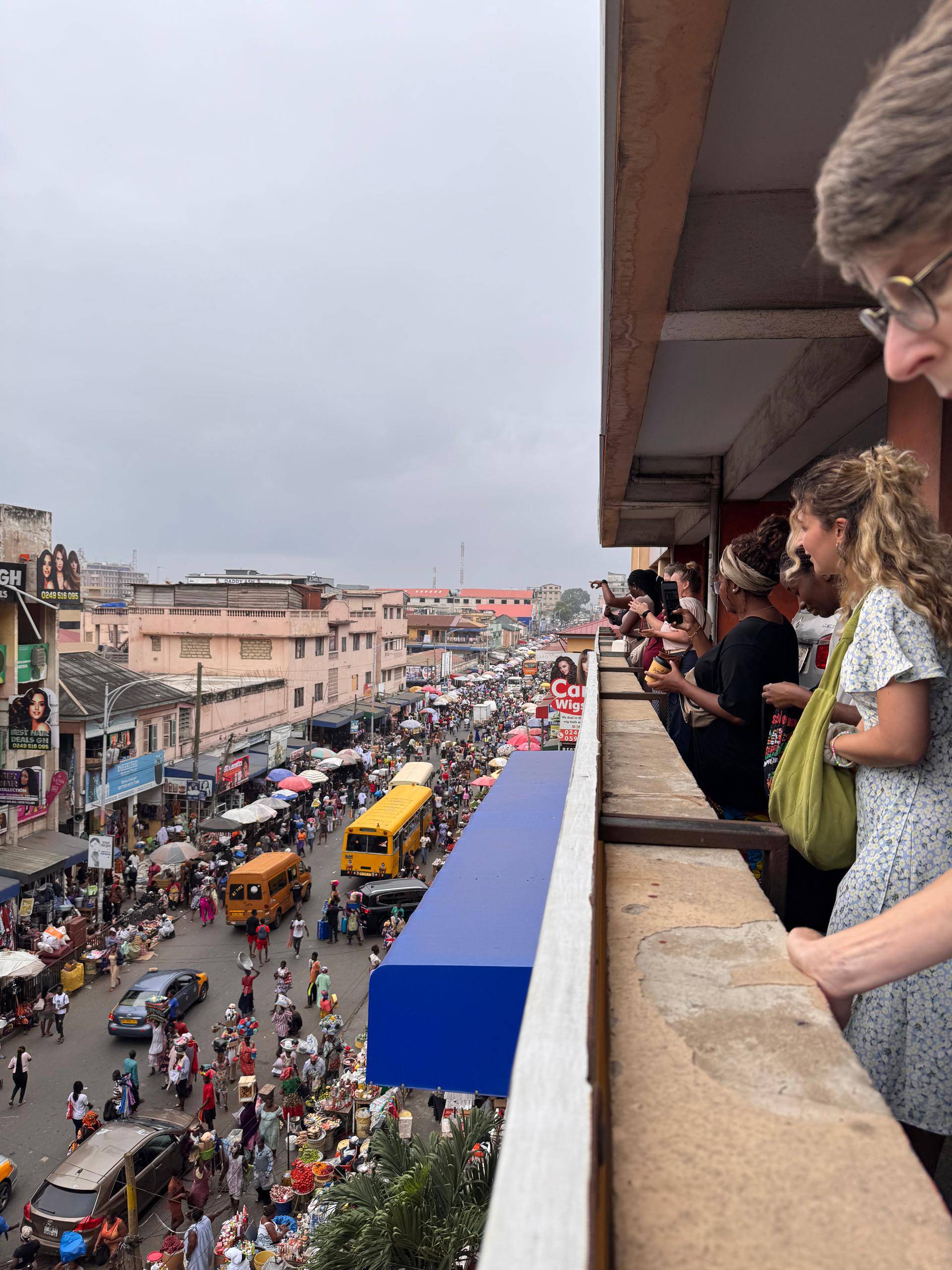 Mit dem erfahrenen Guide Gerald ging es auf eine abwechslungsreiche Tour zu bekannten Highlights der Hauptstadt: Oxford Street, Osu Castle, der farbenfrohe Makola Markt, das historische Jamestown-Viertel, das eindrucksvolle Black Star Monument und das Regierungsgebäude Jubilee House standen auf dem Programm. Dabei wurden nicht nur touristische Sehenswürdigkeiten angesteuert – auch viele praktische Tipps für den Alltag in Accra wurden geteilt.