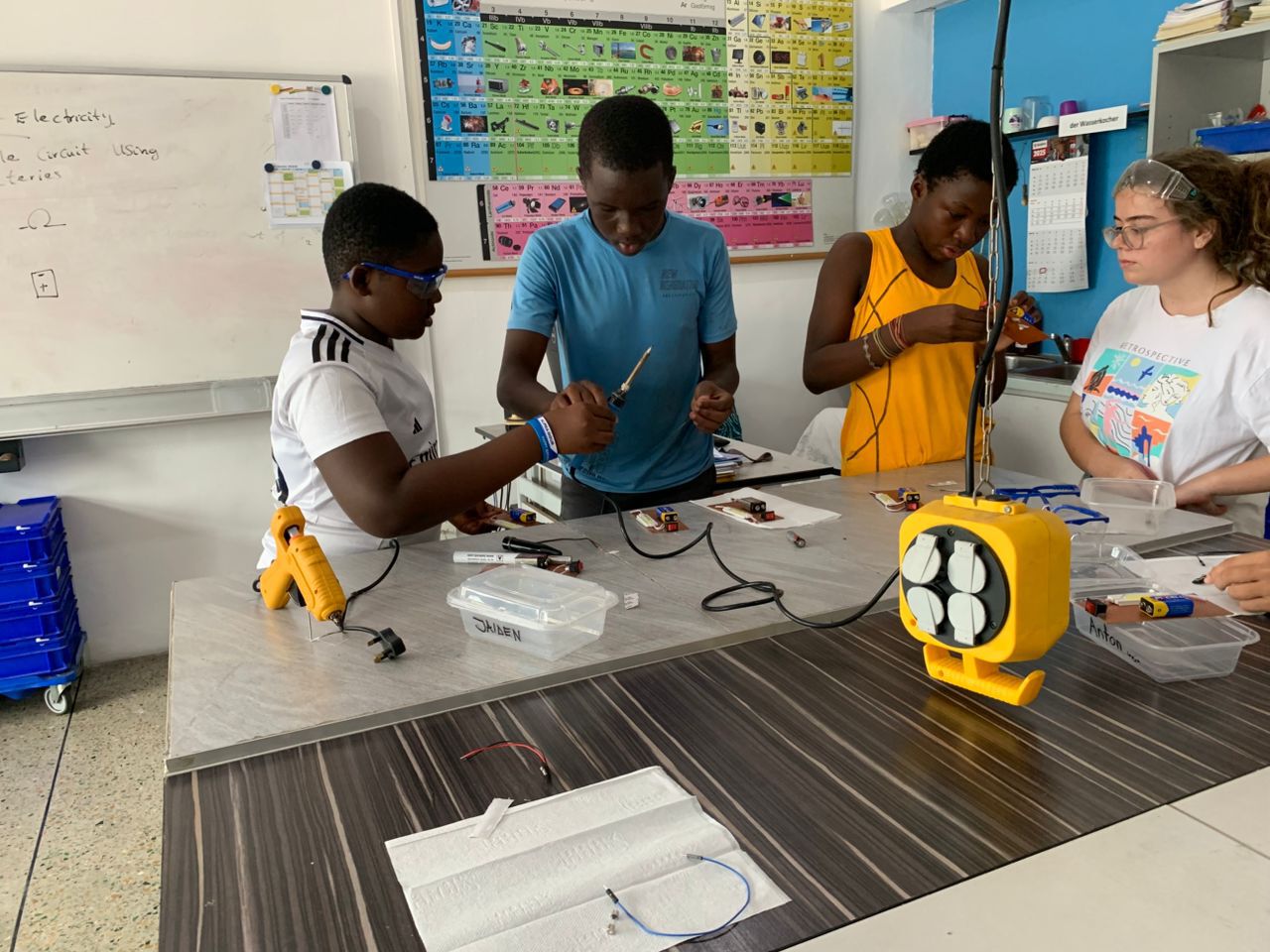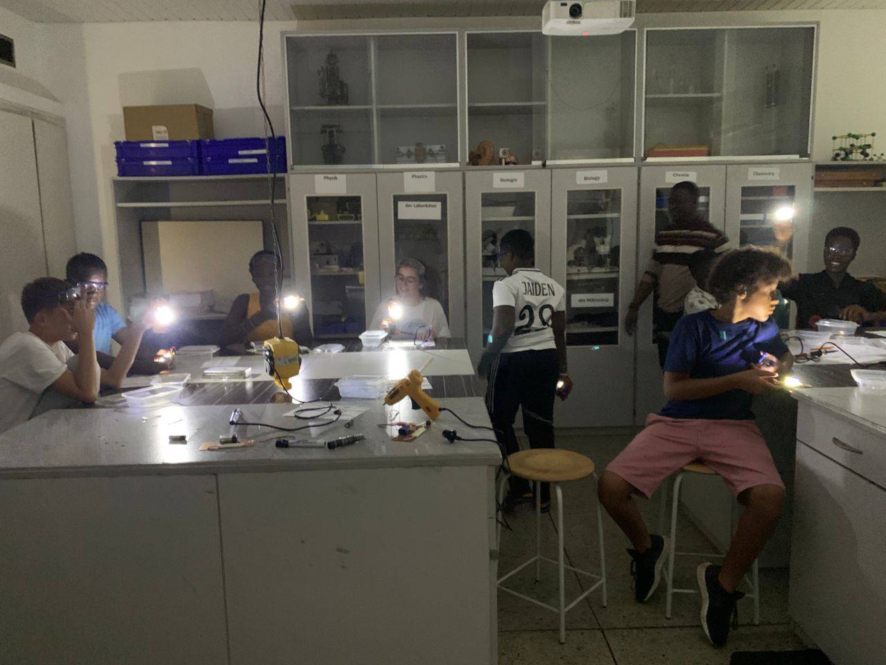 7842bebb 99a1 4cc1 b0a7 8eb51688fe0cKlasse 5 6 cDiese Woche war wieder voller spannender Lernmomente in unseren Klassen! Im Physikunterricht bauten unsere Schüler einfache Stromkreise mit Glühbirnen und Batterien. Das Projekt wurde von unserem Hausmeister Jeff fachkundig begleitet. Die Kinder führten praktische Übungen durch, die ihr Selbstvertrauen im Umgang mit elektrischen Geräten stärkten. Alle Sicherheitsvorkehrungen wurden getroffen – es gab keine Unfälle, und die Begeisterung war groß! In Chemie setzten wir den aktuellen Test fort – mit viel Konzentration und Engagement seitens der Schüler. Die Siebtklässler arbeiteten weiter an den Themen *schriftliches Argumentieren* und *indirekte Rede*. Eine wichtige Grundlage für sicheres Ausdrucksvermögen. Prozentrechnung stand in Mathematik auf dem Plan! Die Schüler lernten die Begriffe *Grundwert*, *Prozentwert* und *Prozentsatz* kennen. In Kleingruppen gestalteten sie informative Plakate zur Herleitung der passenden Formeln. In Geschichte kam die große Epoche des Mittelalters mit einer Klassenarbeit zu ihrem schulischen Abschluss und in Geografie entsteht derzeit eine imposante Weltkarte. In Sport arbeiten die Klassen 5/6 und 7 aktuell an kreativen Akrobatik-Choreografien in kleinen Gruppen – mit viel Teamgeist und Bewegung. Die Siebtklässler zeichneten DNA-Stränge und erarbeiteten die Grundlagen der Genetik im menschlichen Körper – ein spannender Einstieg in die Welt der Molekularbiologie.