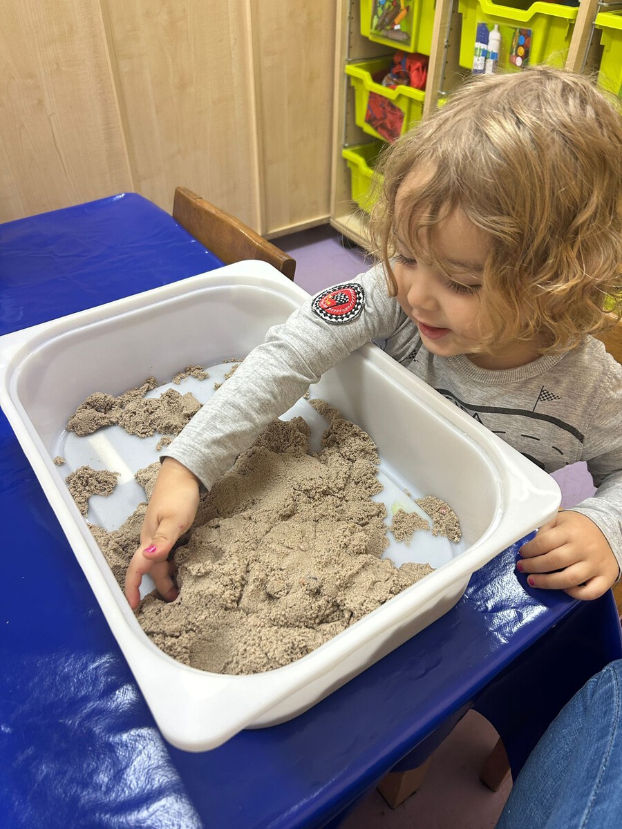 Ein weiteres Highlight war unser Magic Sand-Angebot: Im Sand haben wir nach versteckten Steinen gesucht. Hier standen besonders die taktilen Sinneserfahrungen, die Konzentration und der Spaß am Entdecken im Vordergrund.