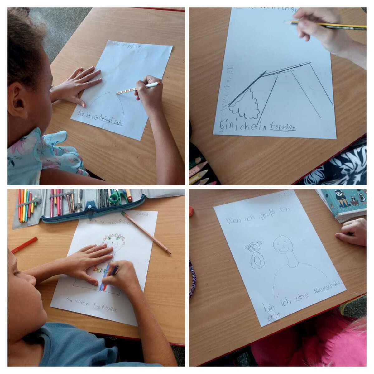In Deutsch Klasse 4 haben wir das Thema Fantasiegeschichten so langsam abgeschlossen, indem wir unsere beste der beiden geschrieben Geschichten abgeschrieben bzw. abgetippt haben. In Klasse 3 in Deutsch haben wir intensiv in unserer grünen Lola zum Thema Verben und Personalformen gearbeitet. Unsere Deutschlernenden haben Interviews über Hobbies usw. erstellt, diese am Mittwoch durchgeführt und dazu Texte über die interviewten Personen geschrieben. In Mathe haben wir uns auf unsere Mathearbeit am Donnerstag vorbereitet. In Englisch haben wir mit beiden Gruppen gemeinsam unsere Klassenfahrt rekapituliert und tolle Tagebucheinträge dazu verfasst. Lasst sie euch gerne von euren Kindern vorlesen. In Science haben wir das Thema Sexual Education abgeschlossen, indem wir uns mit den körperlichen und emotionalen Veränderungen während der Pubertät beschäftigt haben. In Ethik haben wir unsere Klassenfahrt und insbesondere unseren Besuch im Fort of Good Hope reflektiert. In Kunst haben wir unser eigenes Daumenkino angefangen. Nach dem Nikolausfrühstück am Donnerstag haben wir ausnahmsweise Sport mit Patrick Blanke-Schelle gemacht und Zombieball gespielt. Jetzt freuen wir uns auf einen schönen Feiertag und hoffen, wir sehen uns Montag in der Schule. Wir wünschen allen einen erfolgreichen Wahltag.