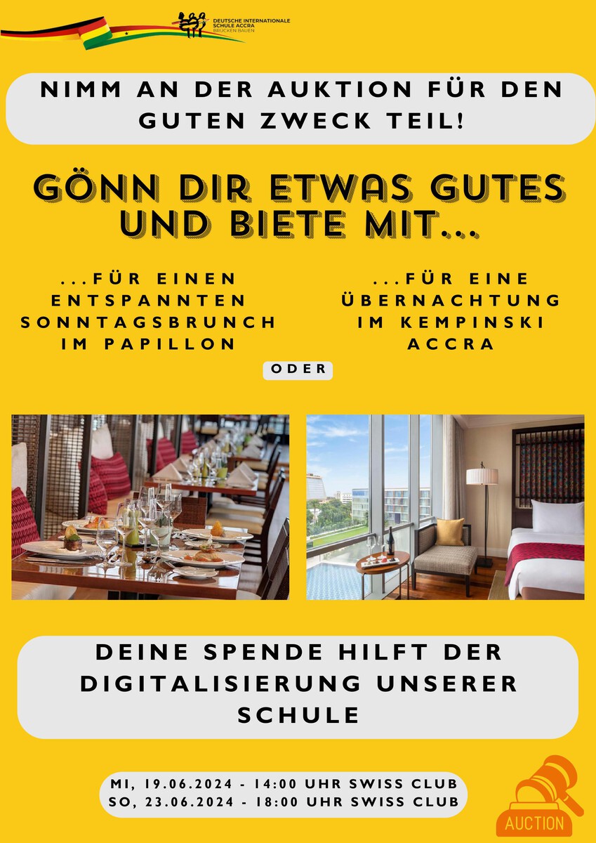 Weiterhin gilt unser Dank dem Kempinski Hotel Accra, dass unsere Aktion zur Akquise neuer Ipads für die Grundschule mit attraktiven Gutscheinen unterstützt, die jeweils bei den Public Viewings versteigert werden.