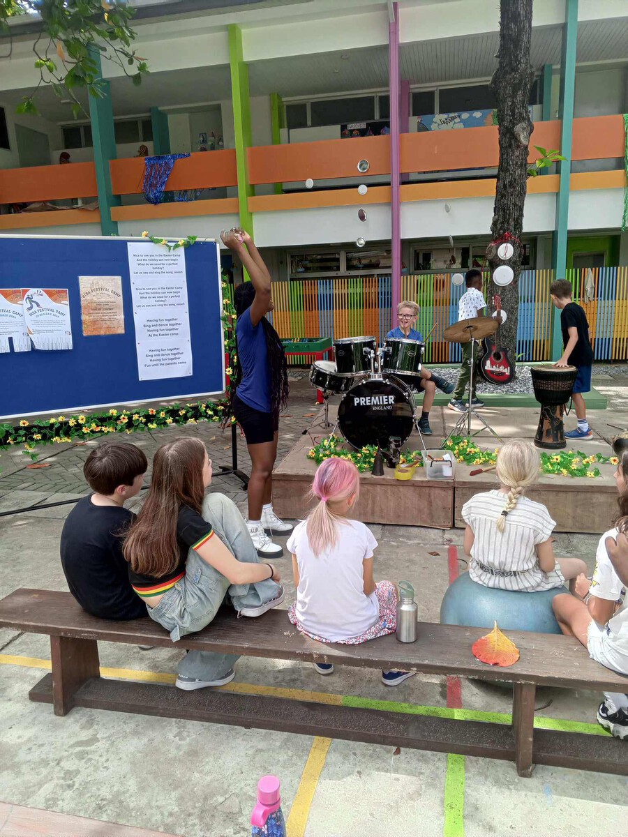 In der ersten Woche der Osterferien fand in der Schule das Festivalcamp statt. Wir hatten eine weitere begeisterte Gruppe von Kindern von innerhalb und außerhalb unserer Schule. Alles drehte sich um Musik: Die Kinder gründeten ihre eigenen Bands, bastelten verschiedene Instrumente und ihre eigenen Outfits und vieles mehr. Am Mittwoch hatten wir glücklicherweise noch einen Tag Zeit, um uns im Schwimmbad zu entspannen, aber am Donnerstag drehte sich alles um ihre große Show. Die Eltern staunten über die vielen Talente und die Kinder amüsierten sich prächtig!