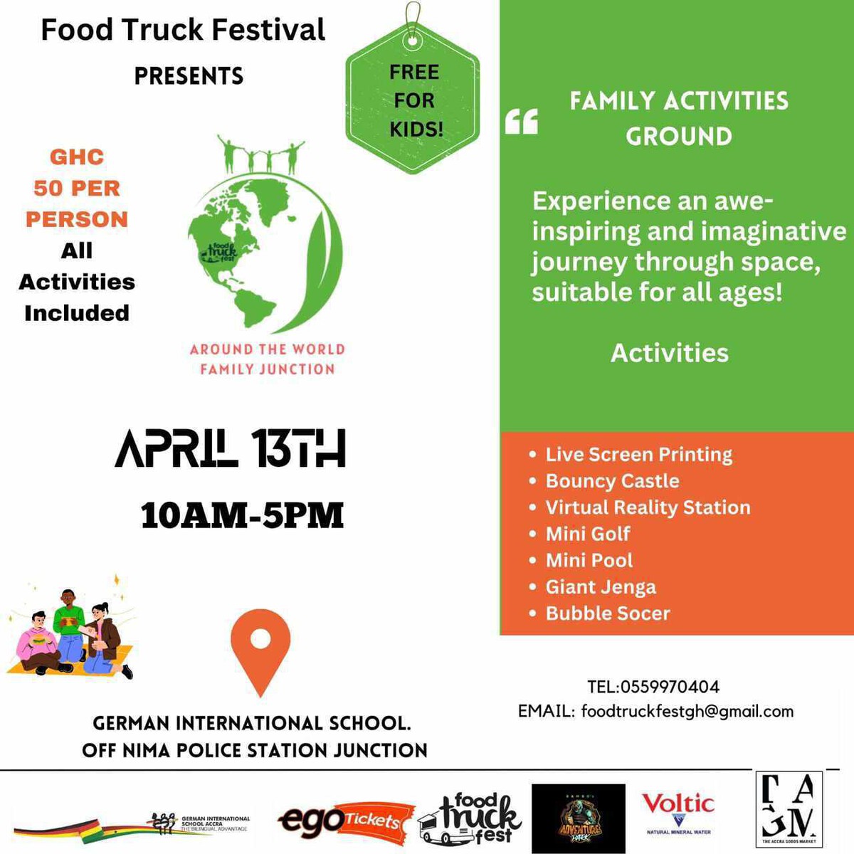 Am morgigen Samstag, den 13. April 2024, findet das nächste Food Truck Festival auf unserem Schulgelände statt. Erleben Sie einen Tag des kulturellen Austauschs, der Familienzusammenführung und des internationalen Geschmacks. Von Teenagern, die ihre Traditionen vorstellen, über Kinder, die kleine Wunder vollbringen, bis hin zu Eltern, die die verschiedensten Gerichte probieren, ist dies eine Reise, die Sie nicht verpassen sollten! Es gibt eine Hüpfburg, Live-Siebdruck, Minigolf, einen Mini-Pool und viele weitere Aktivitäten, die Sie mit Ihren Kindern genießen können.