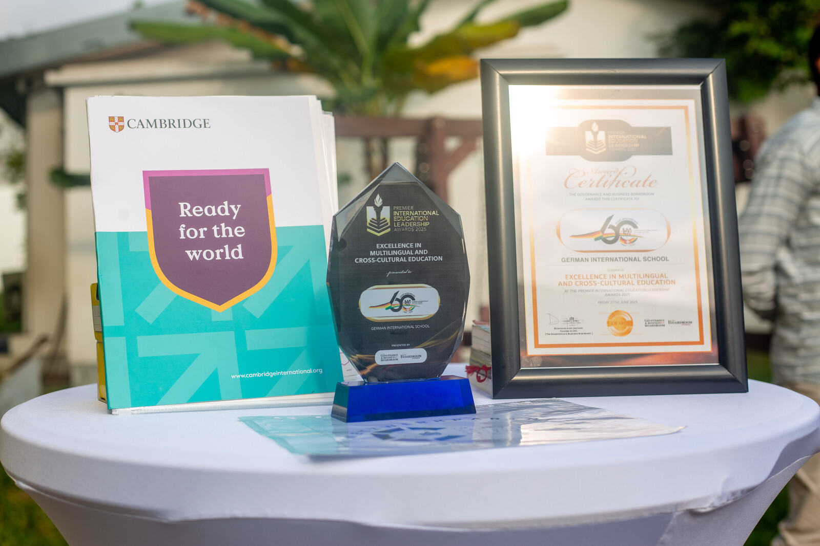 Zum Abschluss der Feier überreichte Clemencia Mayoga feierlich die Cambridge-Zertifikate an die erfolgreichen Schülerinnen und Schüler – ein Moment des Stolzes für alle Beteiligten.