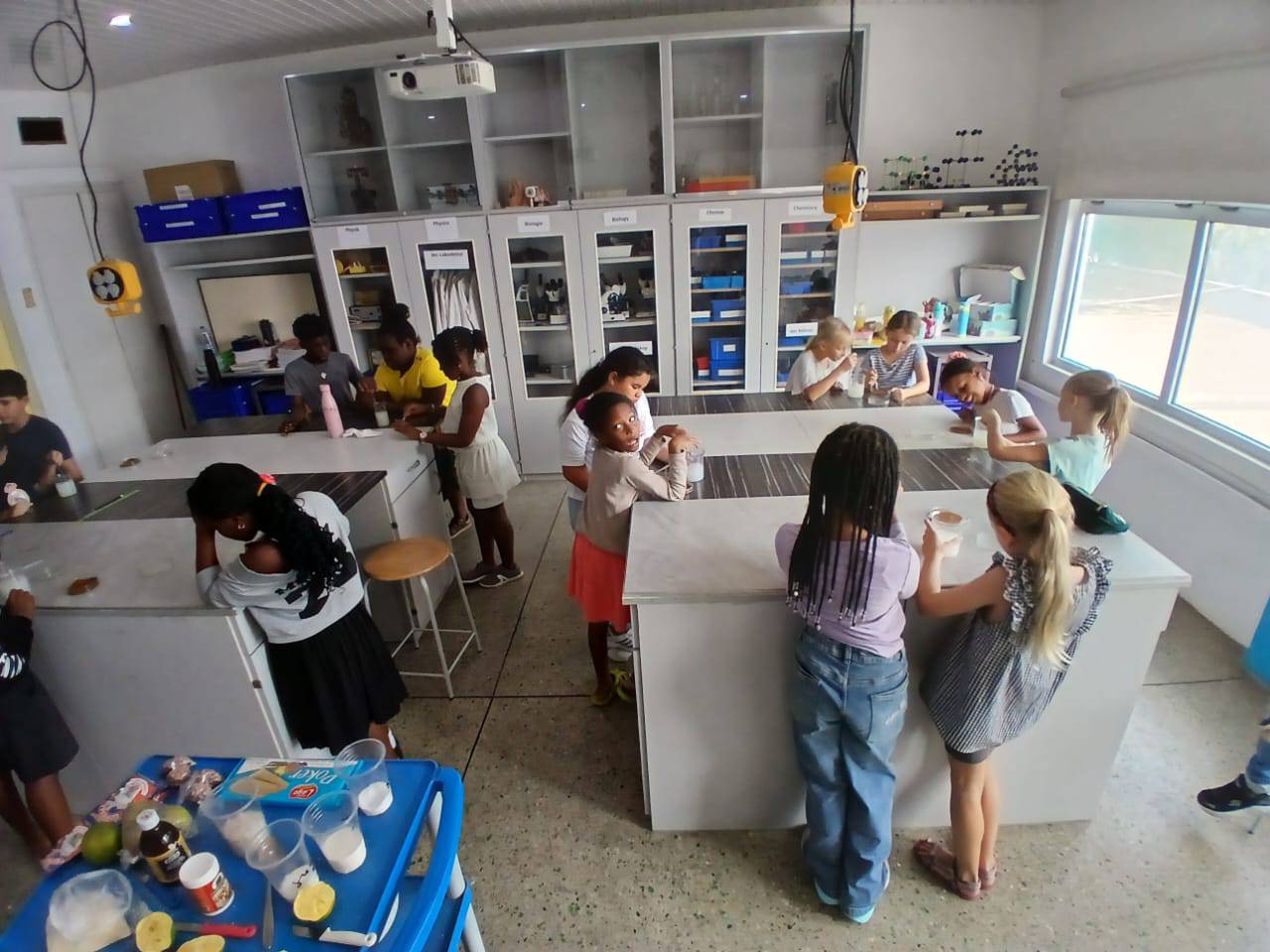 Im Fach Chemie haben die Schüler Lösungen und die Geschwindigkeit untersucht, mit der unlösliche und lösliche Stoffe heterogene und homogene Lösungen und Mischungen bilden. Die Schüler haben praktische Übungen gemacht, um ein tieferes Verständnis dafür zu entwickeln.