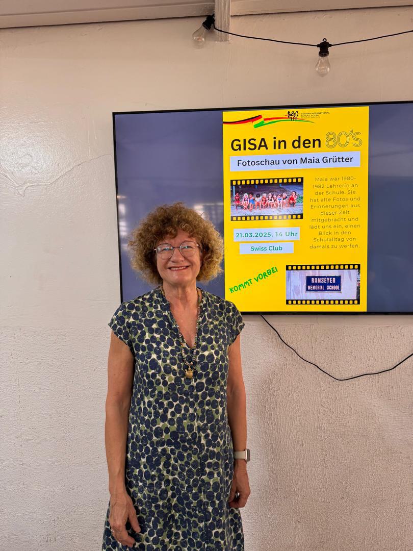 Eine Zeitreise in die 80er Jahre gab es heute bei einer Fotoschau von Maia Grütter. Die ehemalige Lehrerin aus der Schweiz, die von 1980 bis 1982 an unserer Schule, der damaligen Ramseyer Memorial School (RMS) unterrichtet hat, berichtete vor interessierten Eltern, Mitarbeitenden und Schülerinnen und Schülern, die über manche Veränderung staunten.