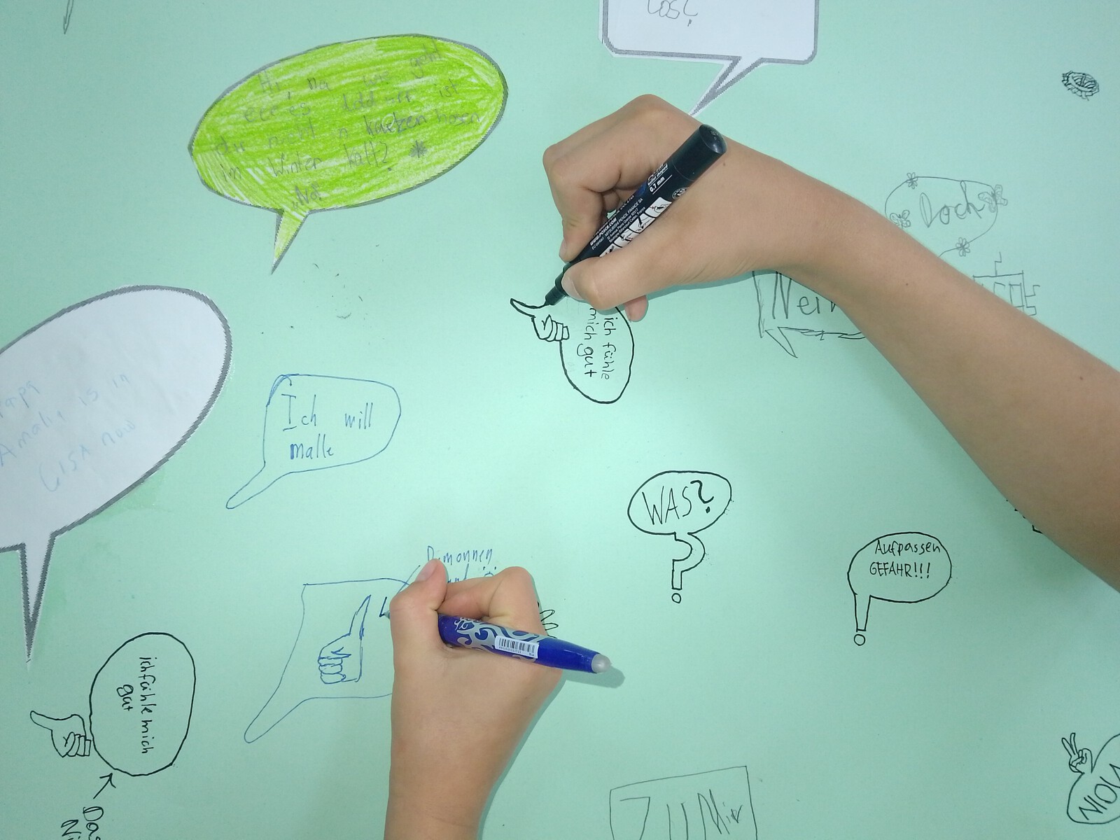 Im Kunstunterricht stand die Frage „Was ist eine Zeichnung?“ im Mittelpunkt. In Deutsch beschäftigten wir uns unter dem Thema „Meine Fähigkeiten und Stärken“ mit Wortschatz und Grammatik – insbesondere mit Adjektiven, Nomen und Artikeln.