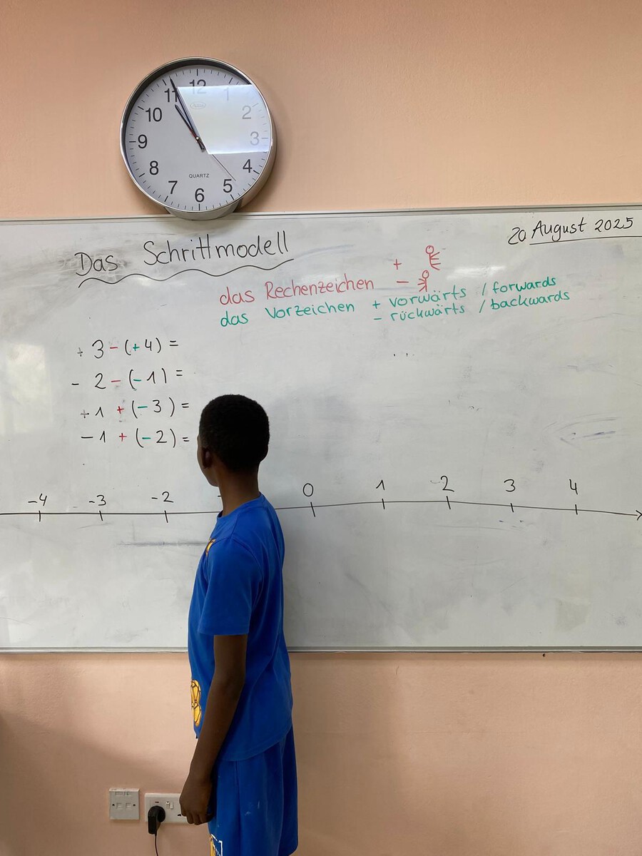 Die Klassen 7/8 behandelten in Biologie Versuche zur Pupillenreaktion und zum räumlichen Sehen. In Mathematik (Klasse 7) übten die Schülerinnen und Schüler das Addieren und Subtrahieren ganzer Zahlen mit dem Schrittmodell.