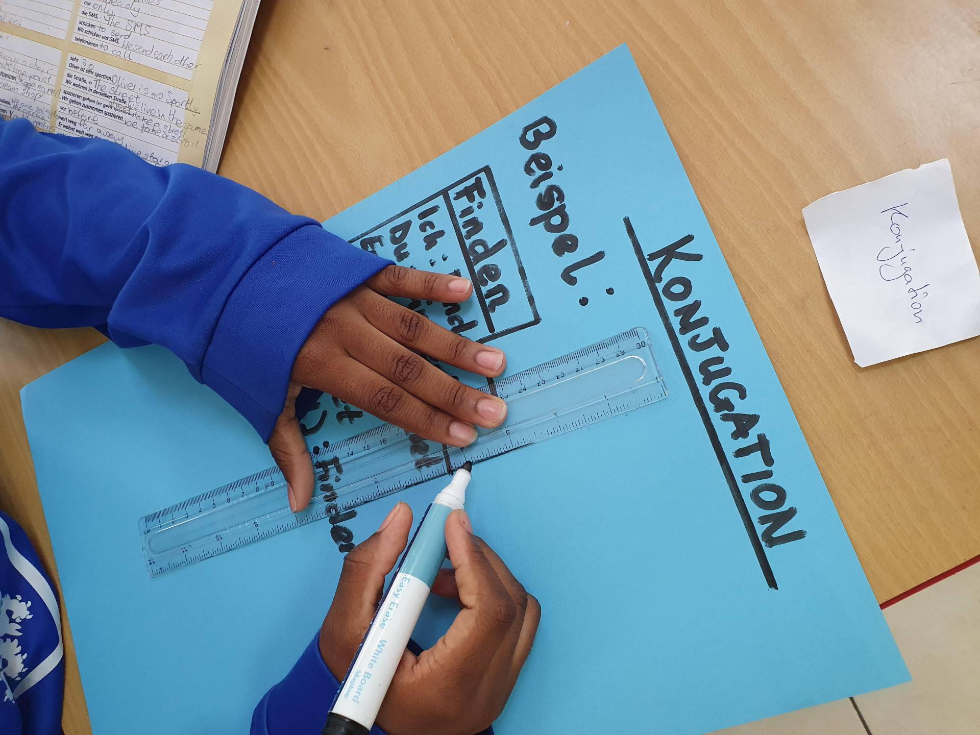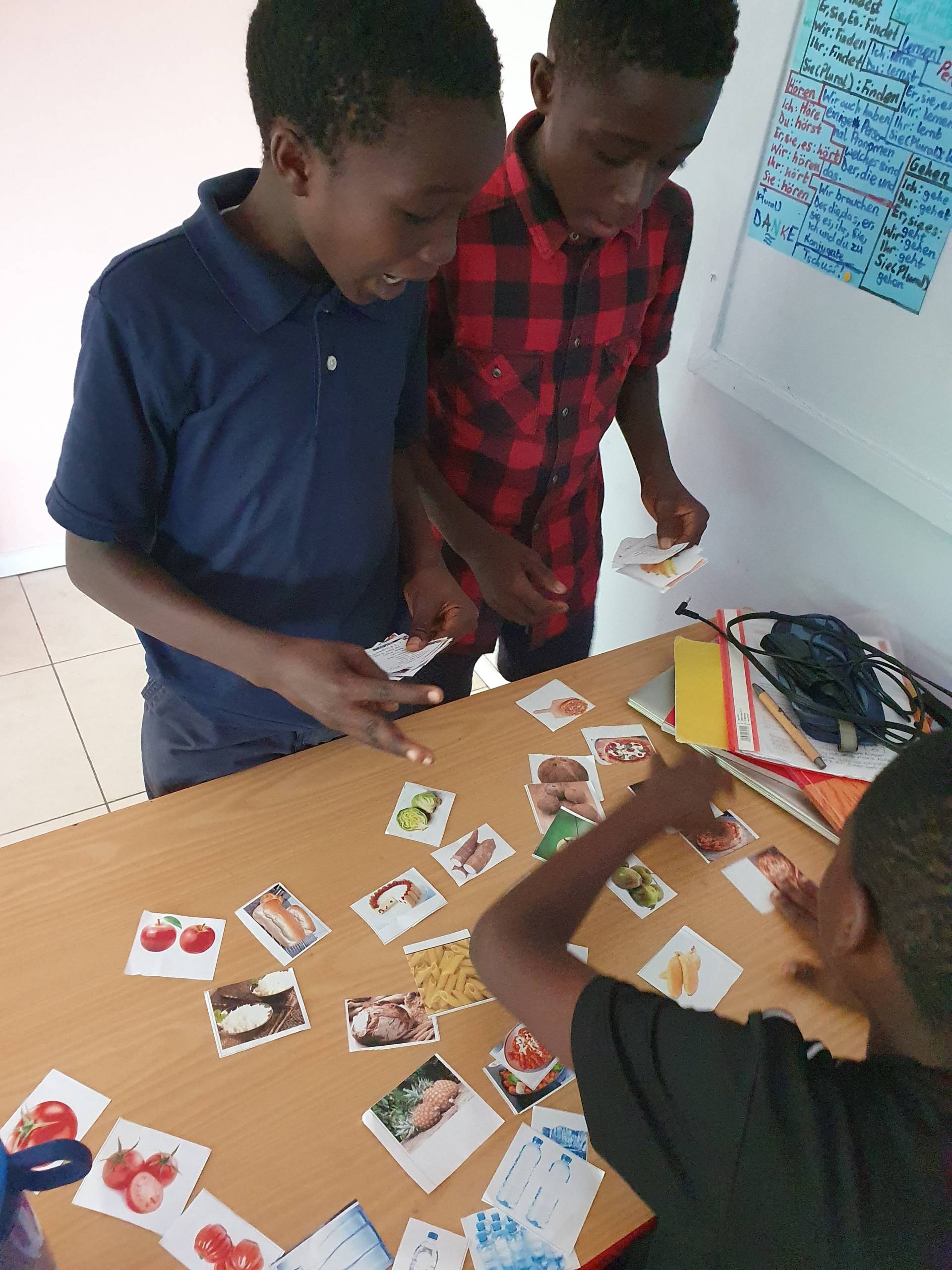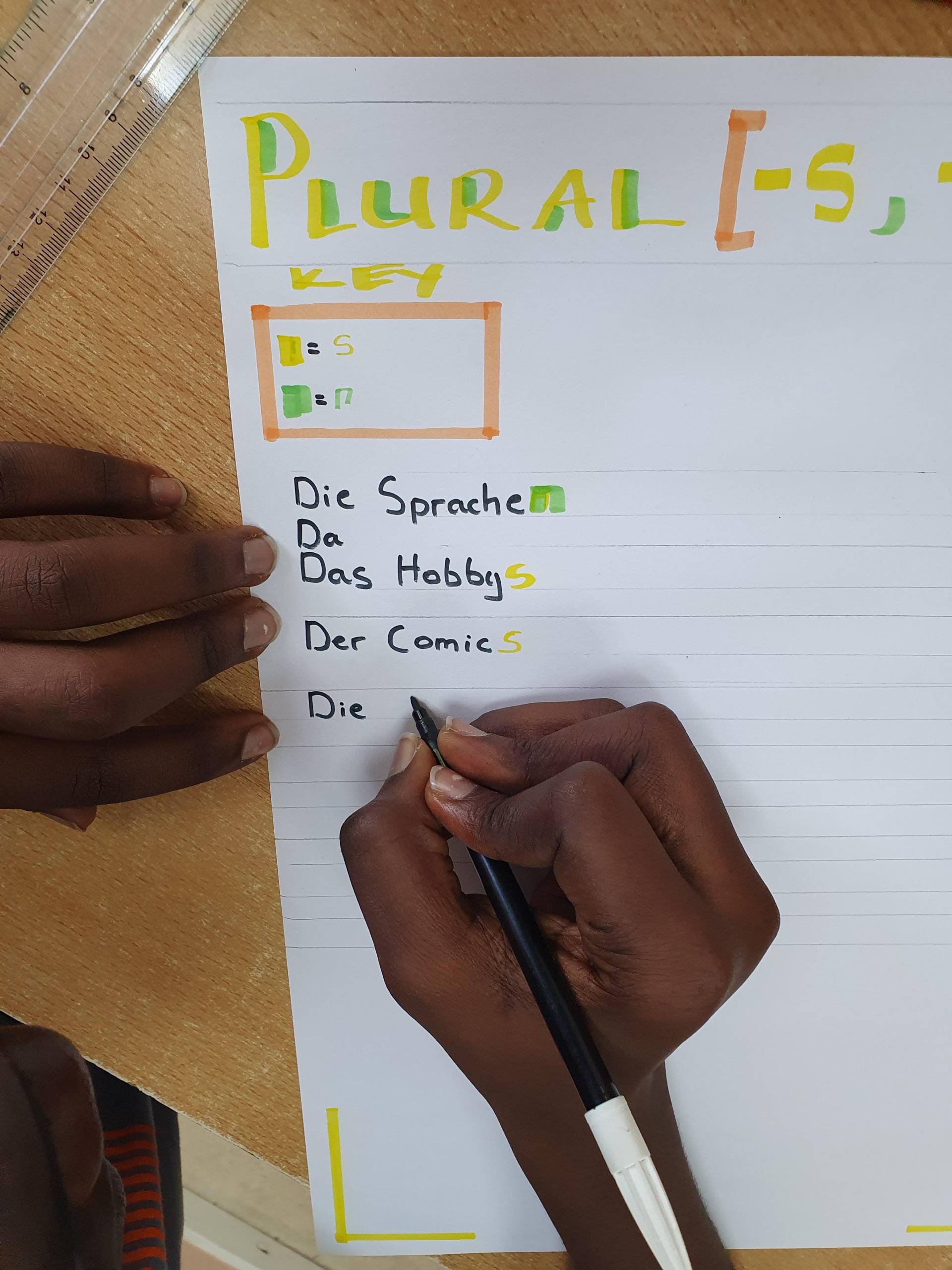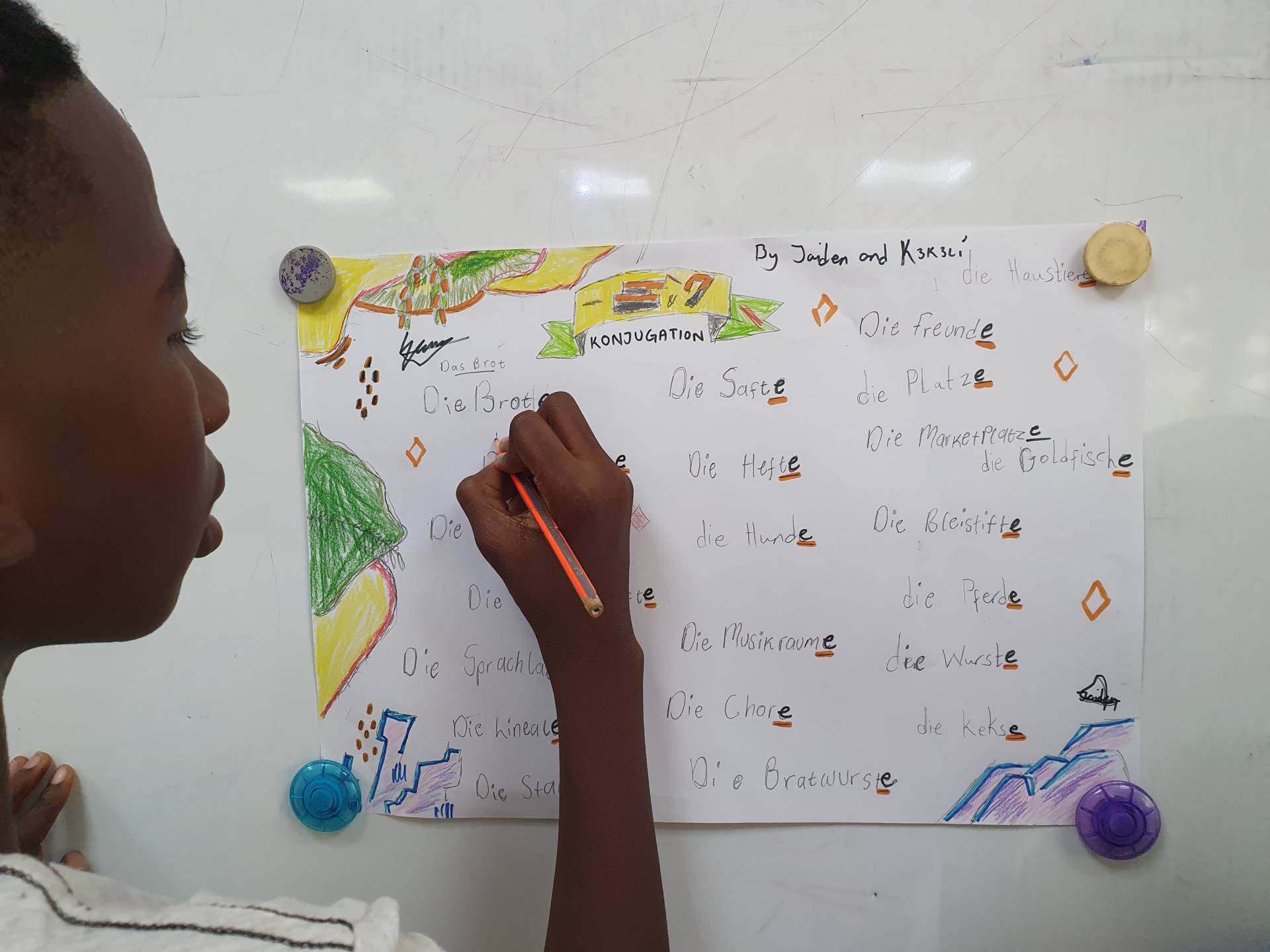 Die DaF-Klasse der Sekundarstufe (Die motivierten Lernenden der Klassen 5, 6, 7) hat sich diese Woche erneut mit Ernährung auseinandergesetzt. Der Wortschatz der Lebensmittel, der Schulmensa und der Restaurants stand im Zentrum. Die Lernenden haben in der Grammatik den Akkusativ die Negation und Affirmation gefestigt und die 5 großen Pluralkategorien der Nomen, sowie den Imperativ bei Verben wiederholt. Neu dazugekommen sind die unregelmäßige Konjugation der Modalverben und das Ausdrücken von Wünschen. Zu den Grammatikthemen haben die Lernenden alleine oder in Paaren eigene Plakate gestaltet und der Gruppe präsentiert. Die DaF-Gruppe hat am heutigen Freitag wiederum eine Lernzielüberprüfung zu den Themen dieser Woche geschrieben.