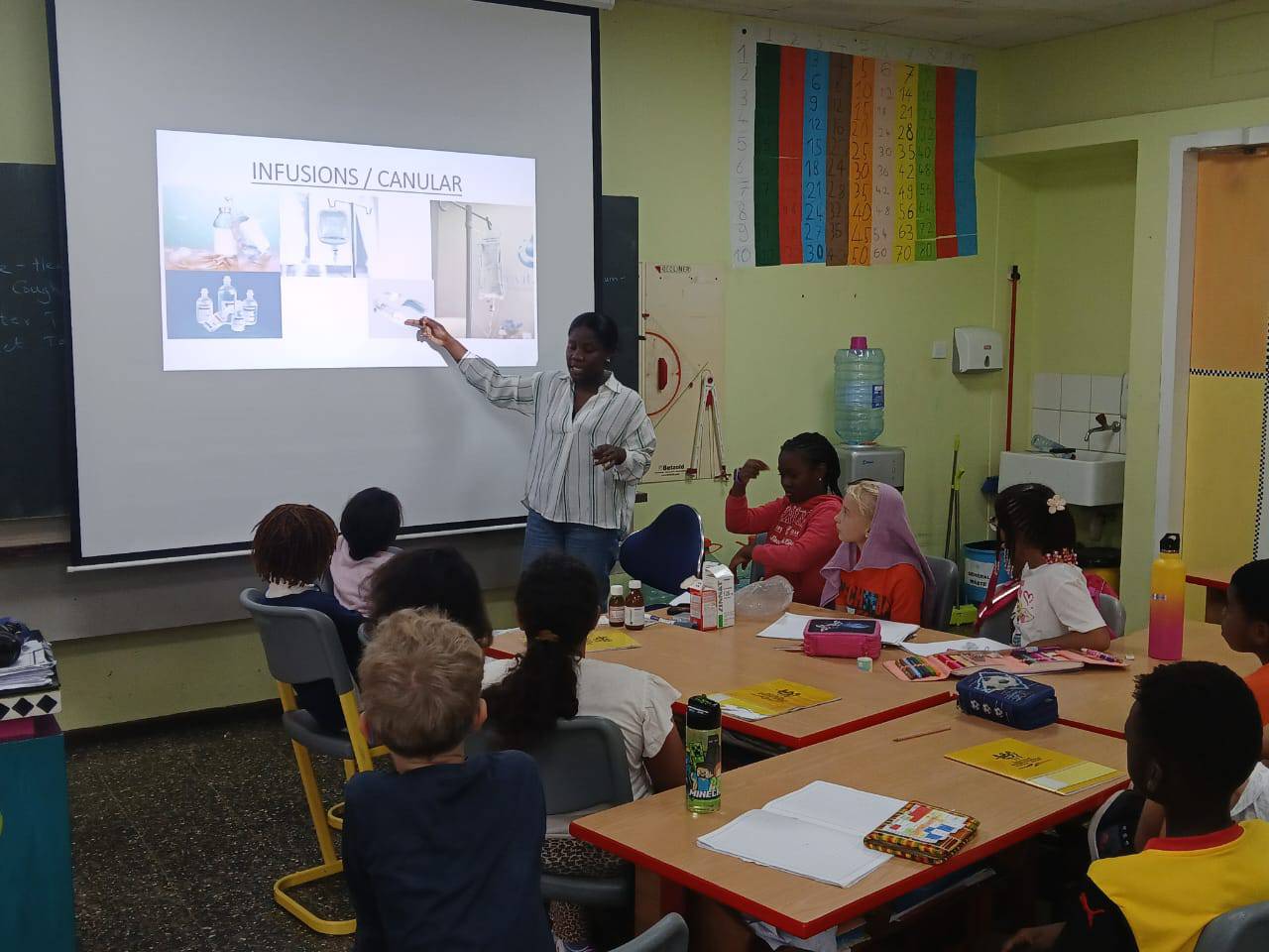 In Deutsch Klasse 4 haben wir diese Woche eigene Gedichte geschrieben, während Klasse 3 an einem eigenen Wörterbuch gearbeitet hat und unsere Deutschlernenden sind diese Woche in die Bibliothek gegangen und haben eigenständig gelesen. Unsere neuen Schülerinnen und Schüler haben die Zeit kennengelernt. In Mathe haben wir unsere Plakate zu den Größen Geld, Gewicht, Länge und Volumen vorgestellt um an Hand von einigen Beispielen eine realistische Größenvorstellung aufzubauen. Im Englischunterricht haben wir verschiedene Textsorten erkundet, darunter Briefe, E-Mails und Postkarten. Die Schülerinnen und Schüler haben sich in Gruppen zusammengefunden und eigene Beispiele zu einer selbstgewählten Form erstellt. Die Präsentationen dazu sind für nächste Woche geplant. Für zusätzlichen Lernspaß sorgte der Active Floor: Mit dem Spiel „Buzz It“ rund um Adjektive und einem Phonics-Memory konnten die Kinder nicht nur ihren Wortschatz erweitern, sondern auch ihre Teamfähigkeit unter Beweis stellen. In Science haben wir uns auf unseren Test vorbereitet, indem wir die unterschiedlichen Teile des Mikroskops kennengelernt haben und uns mit den Teilen der Erde beschäftigt haben. Außerdem behandelten wir das Thema „Medizin und Medikamente“. Dabei legten wir besonderen Wert auf die grundlegenden Arten von Medikamenten, ihre Anwendung und ihren Gebrauch. Ich hatte die Gelegenheit, unsere Schulkrankenschwester Nancy Twieku als Expertin einzuladen. Sie unterstützte uns dabei, verschiedene Aspekte rund um Medikamente und deren Anwendung zu beleuchten. Die Schülerinnen und Schüler nutzten die Gelegenheit, ihre eigenen Erfahrungen mit der Krankenschwester zu teilen – zum Beispiel, als sie krank waren und eine Spritze erhalten haben. Es entwickelte sich eine sehr interaktive und lebendige Gesprächsrunde, in der die Kinder viele Fragen zum Thema Medikamente stellen konnten. Es war wirklich spannend und hat allen viel Freude bereitet. Und endlich waren wir wieder schwimmen. Heute sind wir doch alle ein bisschen erschöpft nach dem tollen Musical in den Freitag gestartet und haben die Woche mit vielen "Danke" im Klassenrat beendet. Allen ein schönes Wochenende und gute Besserung an alle Kranken!