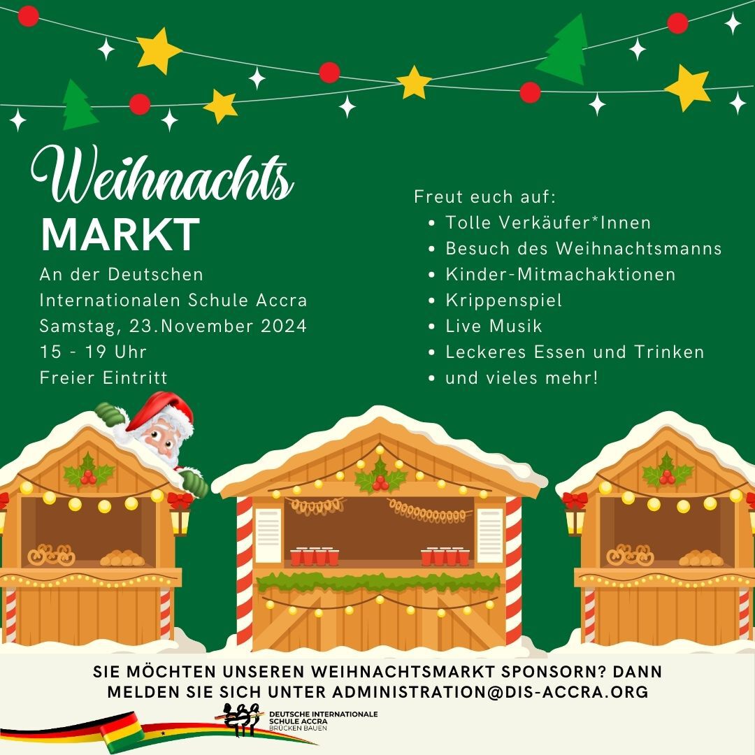 2024 10 25 Weihnachtsmarkt deDie Weihnachtszeit steht vor der Tür, und unser jährlicher Weihnachtsmarkt am Samstag, 23. November 2024 rückt näher. Freut euch auf tolle Verkäufer*innen, leckeres Essen und Getränke, Live-Musik und vieles mehr. Ein Event für die ganze Familie, mit Spaß für die Kleinen – sogar der Weihnachtsmann wird vorbeischauen! Wir freuen uns auf euren Besuch.