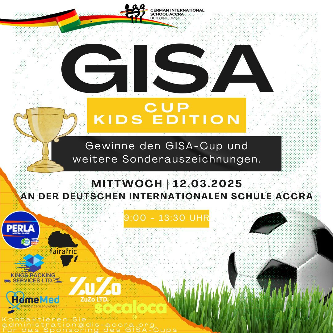 Am Mittwoch, 12.03.2025 findet unsere Kids Edition des GISA Cup statt. Kick Off ist um 9 Uhr und das Finale erwarten wir gegen 14 Uhr. Wir freuen uns darauf, verschiedene Schulen und Organisation aus Accra willkommen zu heißen und gemeinsam die Freude am Fußball zu zelebrieren. Der Focus liegt dabei auf der Grundschule und jungen Spielerinnen und Spielern. Highlights werden die verschiedenen Trophäen und individuellen Preise sein, um das Selbstbewusstsein und die Talente der Kinder zu fördern, vor allem aber das Miteinander. Zuschauer sind willkommen!