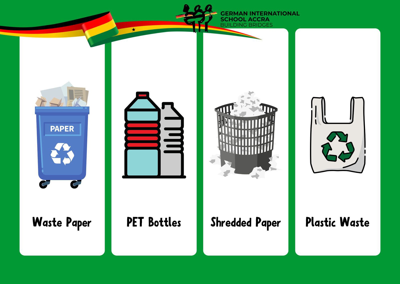 Nachhaltigkeit wird bei uns großgeschrieben! In Zusammenarbeit mit Sika Plastic Recycling setzen wir uns für das Recycling von Abfällen ein. Seit diesem Jahr sammelt Sika Plastic an jedem letzten Freitag im Monat an der DISA geleerte PET-Flaschen, Trinkwassersachets, Plastik, Altpapier und geschreddertes Papier ein. Für jedes Kilo recycelter Materialien erhält die DISA 2 GHS (2.000 GHS pro Tonne), die in Nachhaltigkeit, Instandhaltung und Renovierungen an der DISA investiert werden. Sie können uns unterstützen, indem Sie die genannten Materialien zu unserer gekennzeichneten Sammelstelle vor der Mensa bringen. Bitte achten Sie darauf, dass Flaschen vorher entleert sind. Bei Fragen wenden Sie sich gerne an die Verwaltung! 🌍♻️