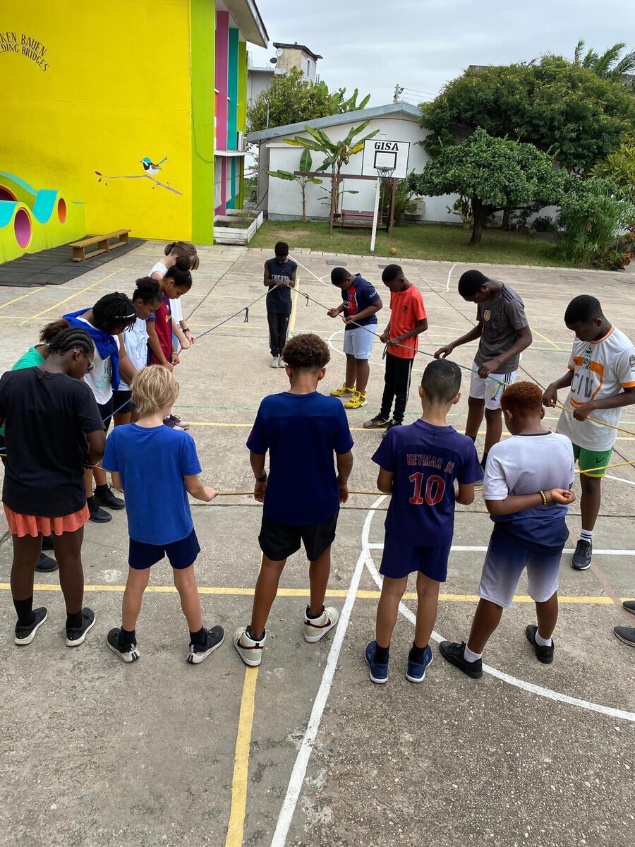 Klasse 6Die dritte Schulwoche an der GISA begann für die Schülerinnen und Schüler der Sekundarstufe mit vielen neuen und auch wiederentdeckten Ritualen. Das gemeinsame Ankommen und Aufstellen auf dem Basketballplatz brauchte zu Beginn etwas Übung, wurde aber schnell von allen gut angenommen.