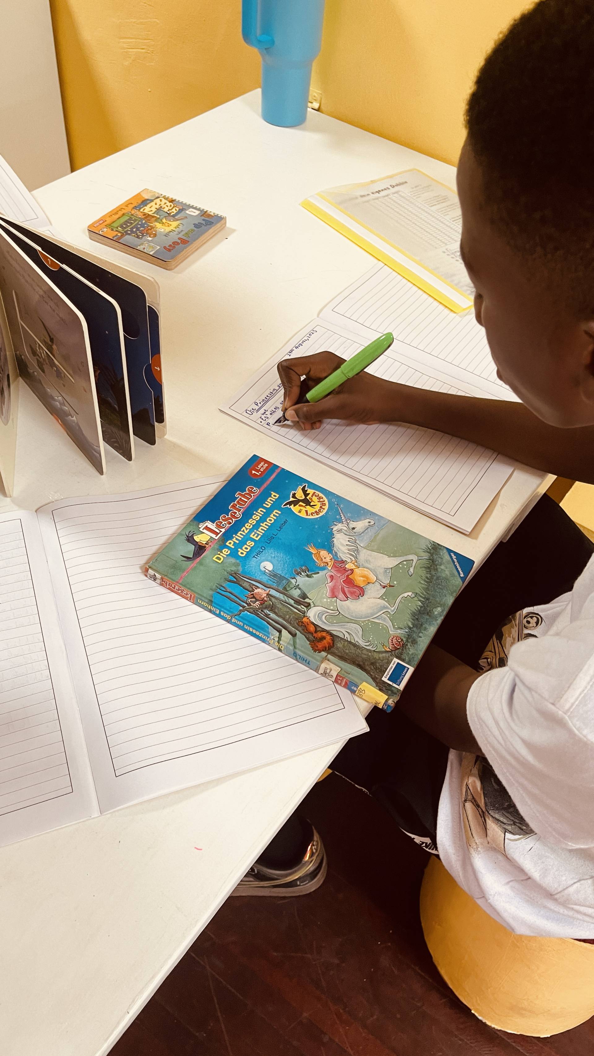 Auch diese Woche zog es die DaF-Klasse 7/8 in die Schulbibliothek – doch diesmal stand nicht das Lesen, sondern das Fantasieren im Mittelpunkt. Jeder suchte sich ein Buch ausschließlich nach dem Cover aus und schrieb dazu eine kleine Geschichte. Die Ergebnisse reichten von witzig bis abenteuerlich und bewiesen eindrucksvoll: Ein Bild kann eine ganze Welt eröffnen!