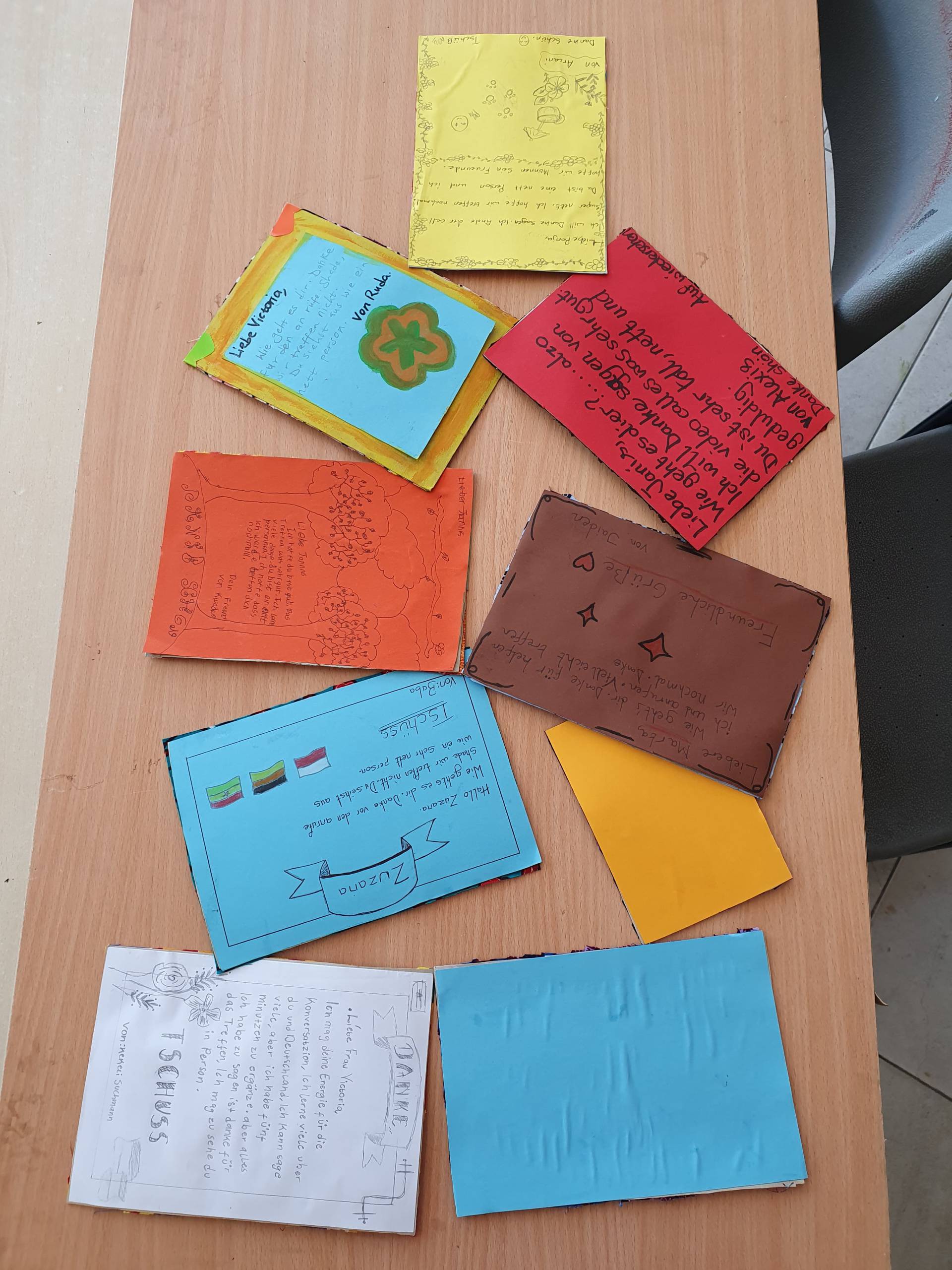 Die DaF-Klasse der Sekundarstufe (Die motivierten Lernenden der Klassen 5, 6, 7) hat sich diese Woche mit dem Tagesablauf und der Uhrzeit auseinandergesetzt. Der Wortschatz der Tageszeiten, der Wochentage, der Uhrzeiten und der zugehörigen Präpositionen stand im Zentrum. Die Lernenden haben in der Grammatik mit dem Präteritum der Verben "sein" und "haben" gearbeitet und die trennbaren Verben kennen und anwenden gelernt. Als Dankeschön für die erste Videokonferenz mit den Studierenden aus Potsdam, haben die Lernenden der DaF-Gruppe eigene Brieftexte verfasst und Postkarten gestaltet. Diese werden in den kommenden Tagen nach Deutschland verschickt. Die DaF-Gruppe hat am gestrigen Donnerstag eine Lernzielüberprüfung zu den Themen dieser Woche geschrieben.