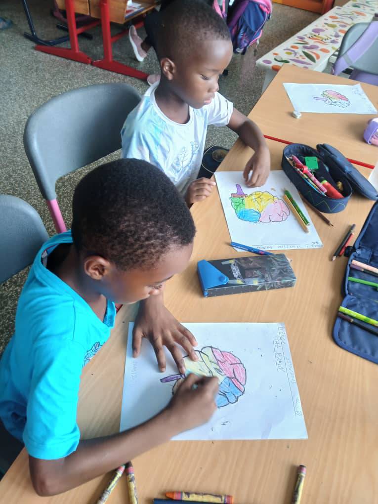 In Klasse 1/2 ging das Lernen diese Woche fröhlich weiter. Klasse 1 schloss das Thema Euro ab, während Klasse 2 an der Multiplikation weiterarbeitete. Im Sachunterricht lernten beide Klassen etwas über das Gehirn, seine Hauptteile und deren Funktionen sowie seine Lage im menschlichen Körper. Außerdem besprachen wir, wie wir unser Gehirn aktiv halten können. Um dies zu vertiefen, bearbeiteten wir ein Arbeitsblatt und malten das Gehirn aus. Im Musikunterricht beschäftigten wir uns intensiv mit der Frage „Können wir Musik lesen?“. Die Lernenden verinnerlichten den 4/4-Takt schnell und kreierten eigene Rhythmen. Jede der fünf Gruppen wählte einen Bandnamen und führte ein Mini-Konzert auf. Sie entwarfen vier Takte im 4/4-Takt und präsentierten diese mit selbstgewählten Klängen wie Klatschen, Pfeifen, Stampfen oder Kreischen.