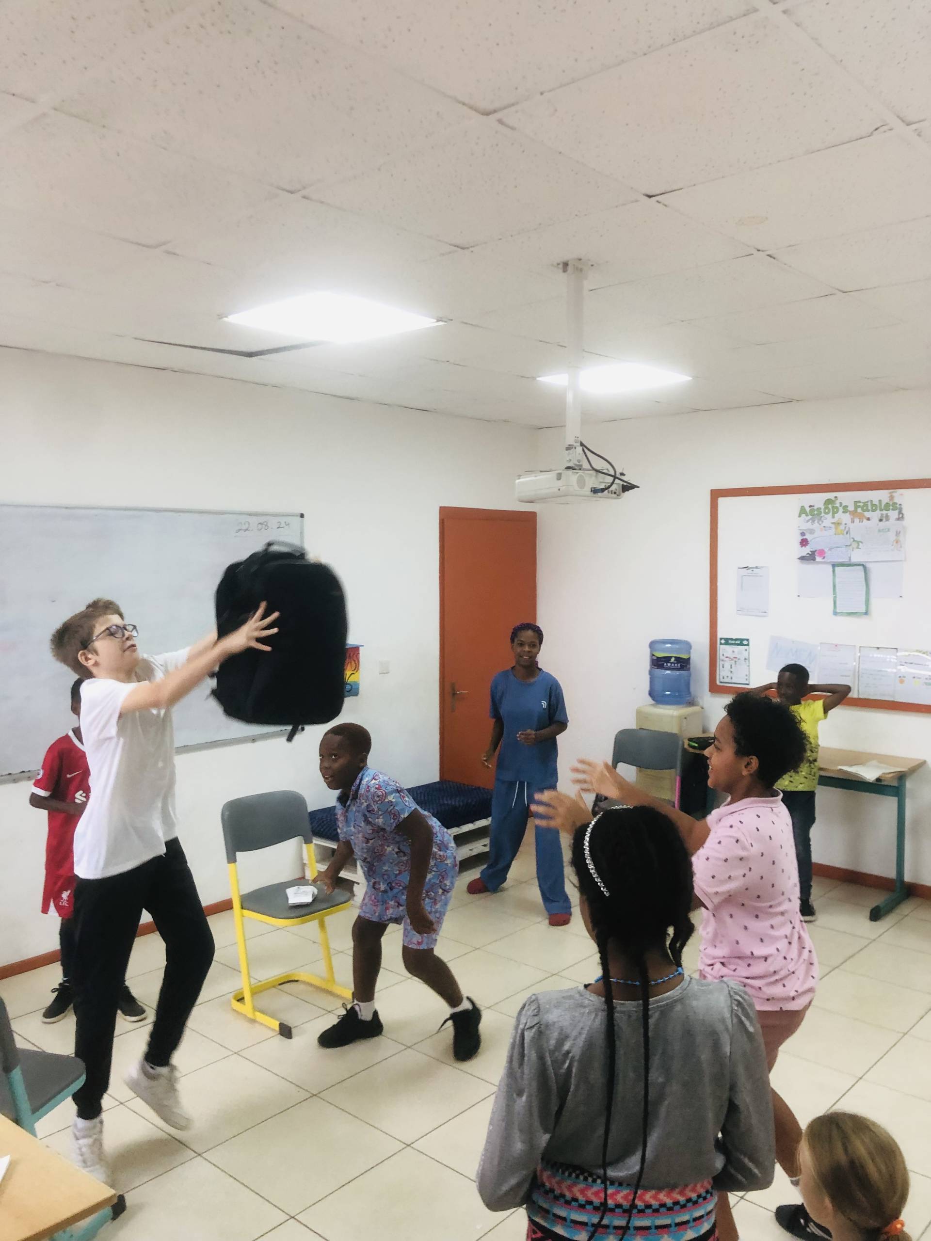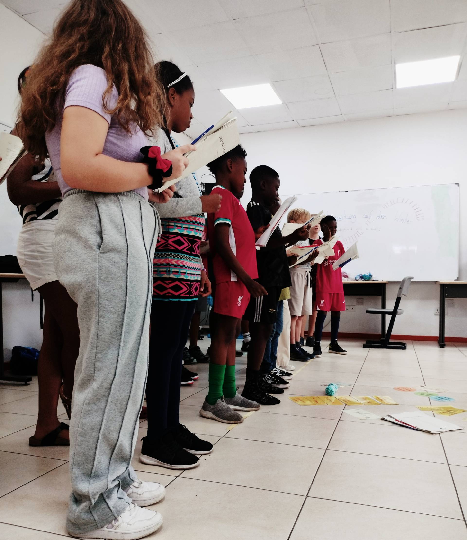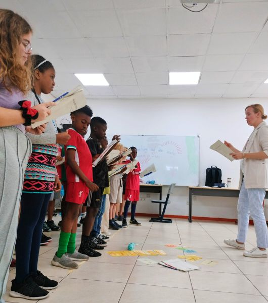 Am 23.08.2024 besuchten Prof. Dr. Winnie-Karen Giera sowie die studentische Hilfskraft Lilly Woltersdorf von der Inklusiven Deutschdidaktik die Deutsche Internationale Schule in Accra (Ghana). Der 6. und 7. Jahrgang gestaltete mit ihnen ein Theaterworkshop mit einem Jugendtext zum Thema Mobbing. Nach ein paar Aufwärmübungen für das szenische Spielen ging es auch schon los mit dem Üben des Textes. Das Lesetraining führte zu einem Vorlesetheater.