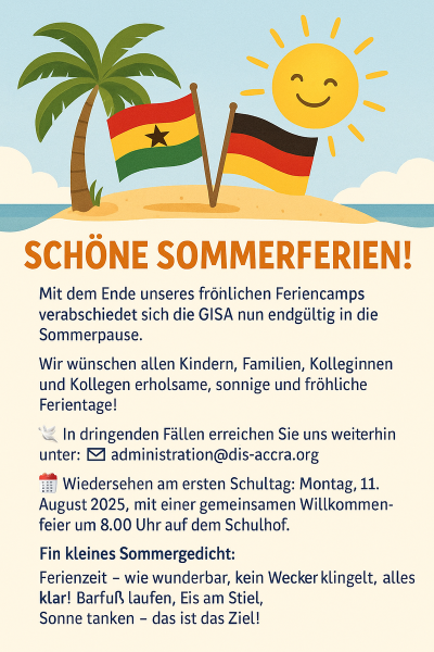 Wir wünschen allen Kindern, Familien, Kolleginnen und Kollegen erholsame, sonnige und fröhliche Ferientage!