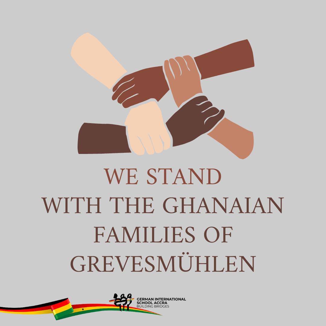 Die Schulgemeinschaft der Deutschen Internationalen Schule Accra verurteilt die schrecklichen und beschämenden Vorkommnisse in Grevesmühlen (Mecklenburg-Vorpommern) auf das Schärfste. Wir bekunden unsere Solidarität mit den betroffenen Kindern und Familien.