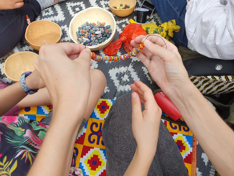 • Wir haben ganz viele Armbänder gemacht. Manche waren schwer und andere leicht zu machen. Man konnte ganz viele Farben aussuchen und die Armbänder sind ganz schön geworden.