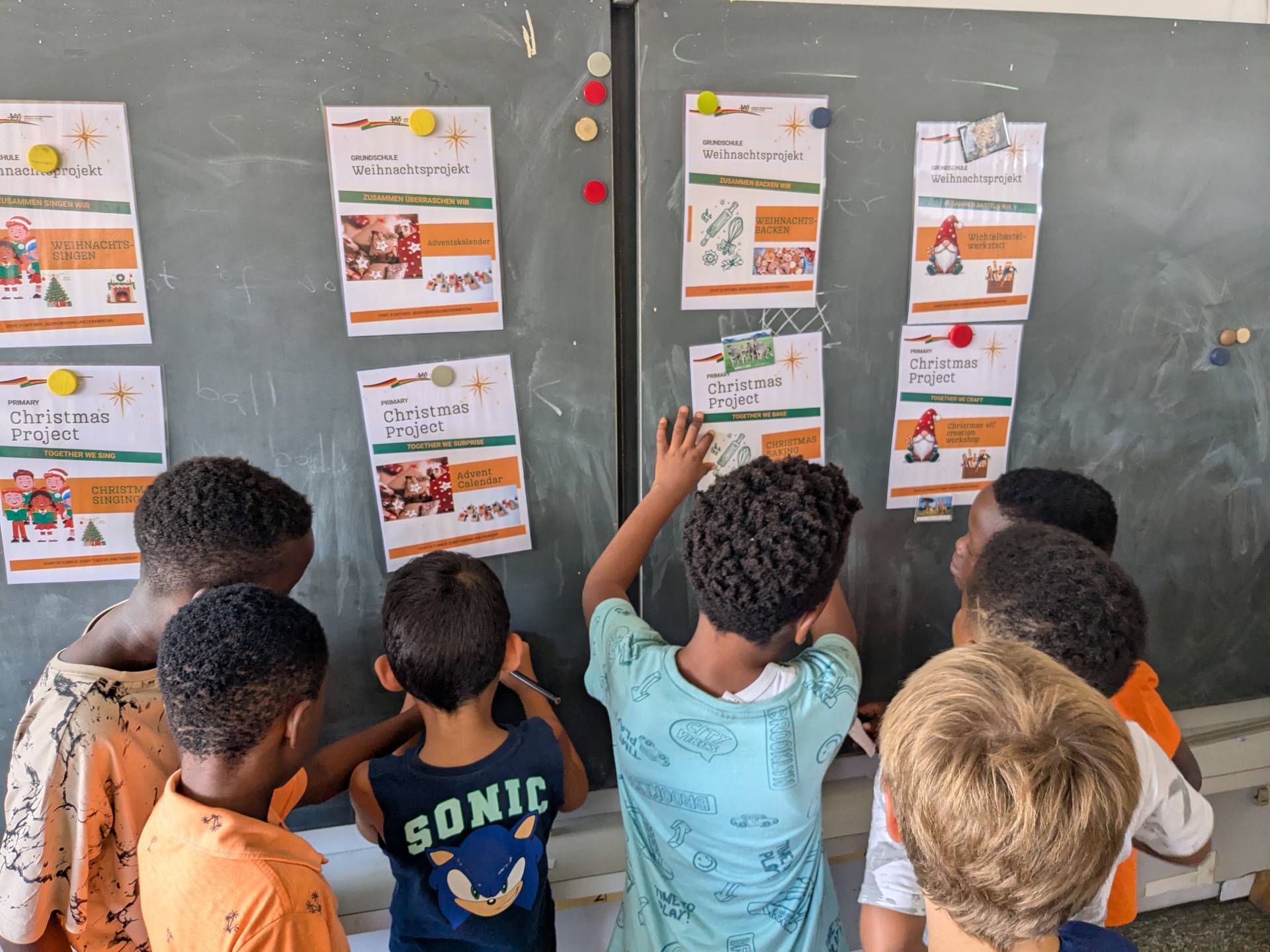 In der Grundschule standen diesmal diese vier weihnachtliche Themen zur Auswahl: Weihnachtslieder, Adventkalender, Backen und die Wichtelbastelwerkstatt.