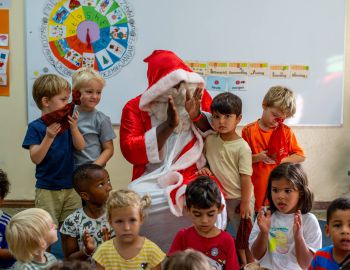 Heute war der Nikolaus an der DISA zu Besuch. Die Kinder haben für ihn gesungen und Gedichte aufgesagt. Der Nikolaus hat jedem ein kleines Geschenk mitgebracht.