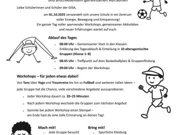 Inspiriert durch den Wettbewerb der ZEIT „Stabile Sache“ und bewegt durch den bunten Schulalltag, verabschieden wir uns am Mittwoch, den 01. Oktober 2025, mit einem besonderen Projekttag in die wohlverdiente Herbstpause.
